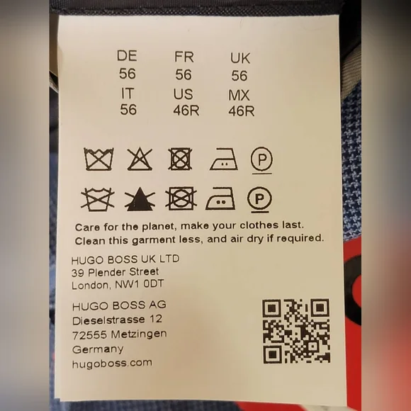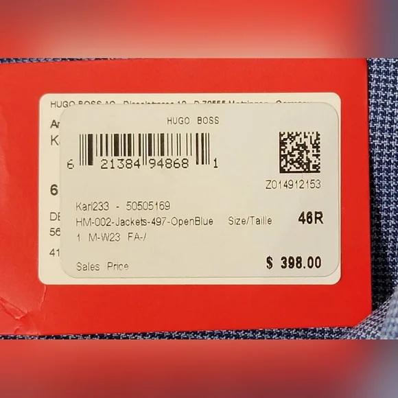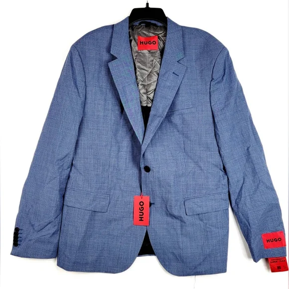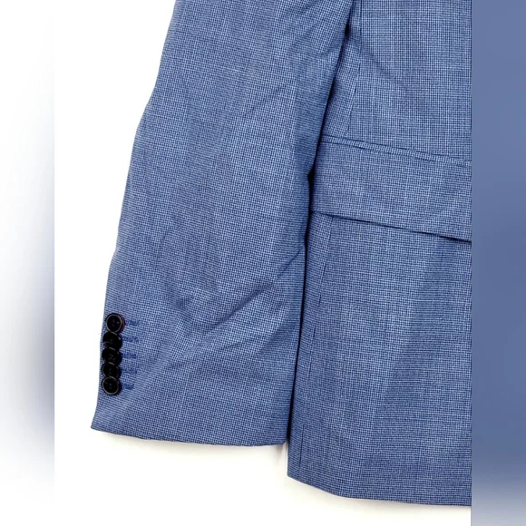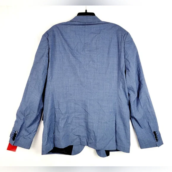 $398 Hugo Mens Micro-Grid Superflex Performance Suit Jacket BlazerFully linedInside welt pocketsNotched lapelsButton closureWelt pocket at chestFlap pocketsSide ventTwo buttonsShoulder to hem 31"Shoulder 20"Pit to pit 22.5"Sleeve 26.5"Measurements are taken laying flatThe size may have 0.5"-1" differs due to manual measurement. Size : 46RColor : Blue Light#Lot11