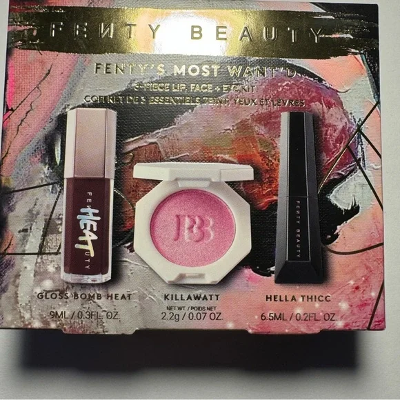Fenty Most Want'd 2024 Holiday Set 3 Piece SetBrand new Holiday set! Limited edition. Never opened box. Super fresh & ready to ship. I ship fast! Kit has:Full size Gloss Bomb Heat in Hot Chocolit .3 fl ozFreestyle Highlighter in Killawatt .07 ozHella Thicc Mascara in Cuz I’m Black .2 fl ozThanks for looking. GWP always & handled with the utmost care and cleanliness.