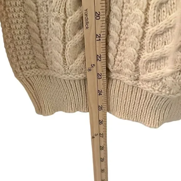 SIZE: M - not sure if this is mens or womens - could be unisexSPECS:Pit to pit - 17"Length - 25"COLOR: CreamMATERIAL: 100% woolFEATURES: Drawcord, pullover, cable knit, pockets in frontCONDITION: Excellen. No flaws.Score an amazing 20% off when you grab three or more items!Got questions? Shoot! Offers? We're all ears!