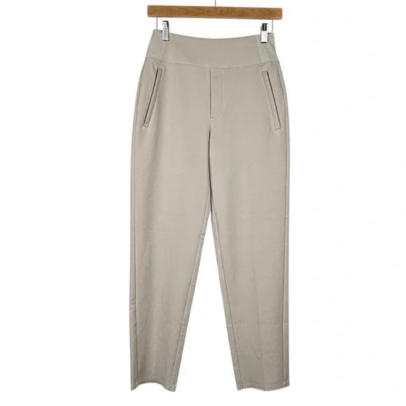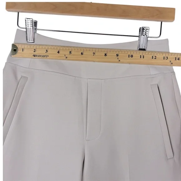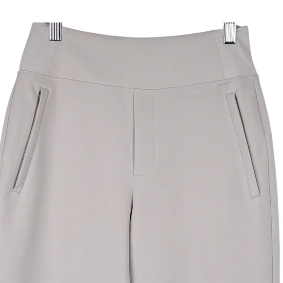 Athleta Women's Endless High Rise PantsColor: AbaloneSize 0Great pants for travel, work or commutingPrimaStretch is refined, subtly textured and perfectly stretchyPowervita waistband is buttery soft and holds you in for all-day comfortZip pocketsBack zip pockets Semi-fittedSits on natural waistStraight leg fits slim through the lef then eases up below the kneeBreathable, wrinkle resistant, moisture wickingGreat conditionminimlist commute travel office all-day wear quiet luxuryMeasurements are approximateWaist 13.5" (26-27" total)Inseam 27"Length 36"Rise 11"