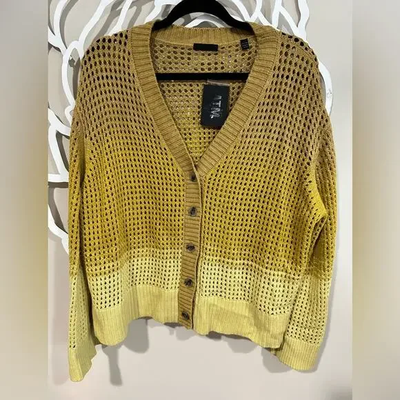 Tag attached- Nordstrom pallet stock-possibly a return Size XLDijon ComboAn open knitpattern on this tone-on-tone cardigan gives it a stylish and comfortable fit.V-neckLong sleevesButton frontViscose, nylon, wool, cotton & cashmere🚨 Purchased from a reputable liquidation store.The items I buy are typically brand new with or without tags and I will mention any issues in the description. I search diligently to find the highest quality items that I myself would love to own.However, clothing that is sold through liquidation is there for various reasons, such as samples, overstock, display, returns, or they just didn't sell. Please ask questions if you are concerned about the garment. Clothing may have a strike through on tag to prevent returns but all items are authentic and any noticeable flaws will be mentioned.Questions? Leave a comment below!