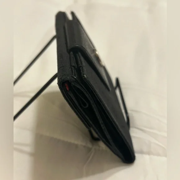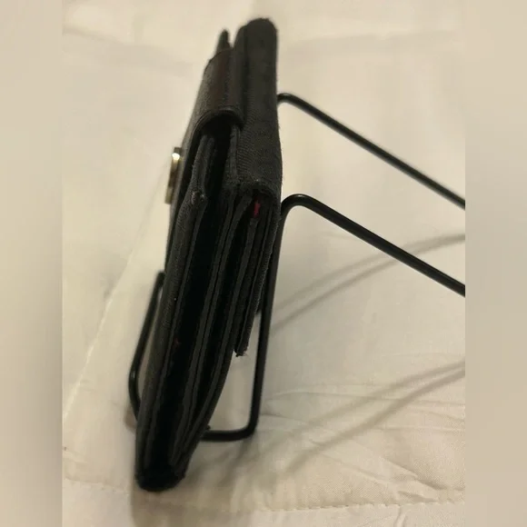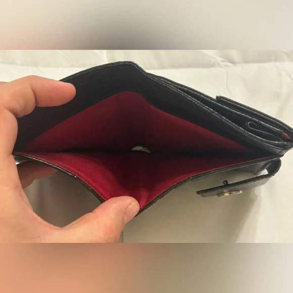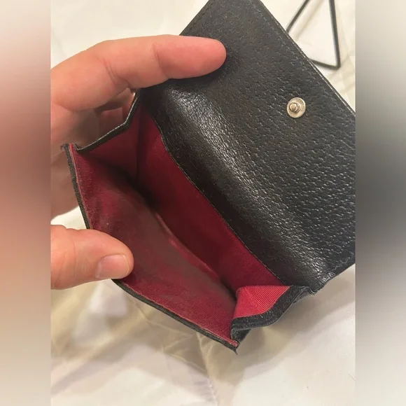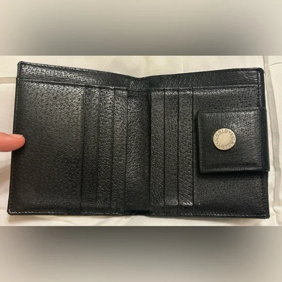 BVLGARI (Bulgari)AuthenticGenuine leather and canvas exterior with silver hardware, genuine leather interior with red interior pocket lining.EUC - no major call outs. No peeling, no stains. See last photo for up close look at a small tear on one credit card slot and also see photo of coin pouch with minimal coin residue.Smoke free, pet friendly homeDimensions:4.5” W x 4” H