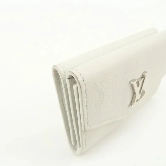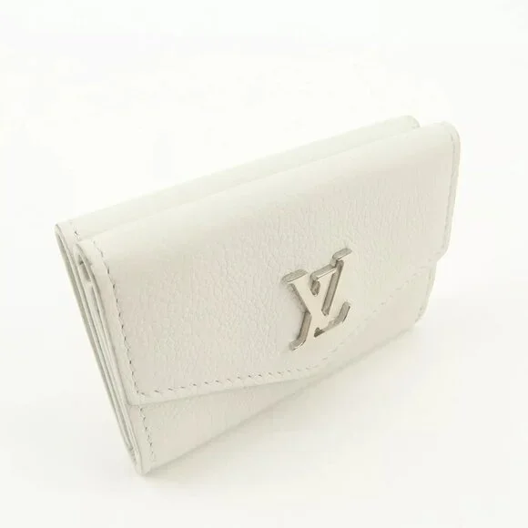 🩶Authentic Louis Vuitton Portefeuille Lock Mini Wallet🩶Leather, White🩶Style: Tri-fold wallet🩶Size: W10 × H7 × D1.5cm (3.94"/2.76"/0.59")🩶Free authentication by 🩶It comes beautifully and safely wrapped🩶Shipping: 5-7 daysCondition Rating: 🩶Outside condition:(Scratches) some abrasions, corner rubs(Stains) some stains, discoloartions(Remarks) lost it shape, some cracks on edge🩶Inside condition:(Scratches) some abrasions(Stains) some stains🩶Average,well used condition.