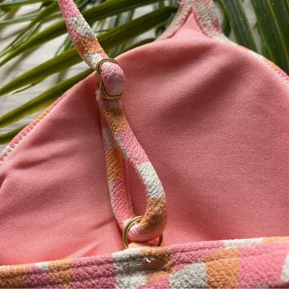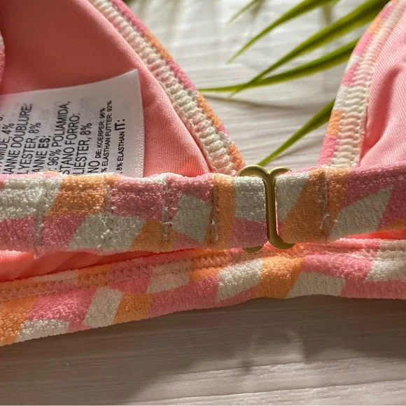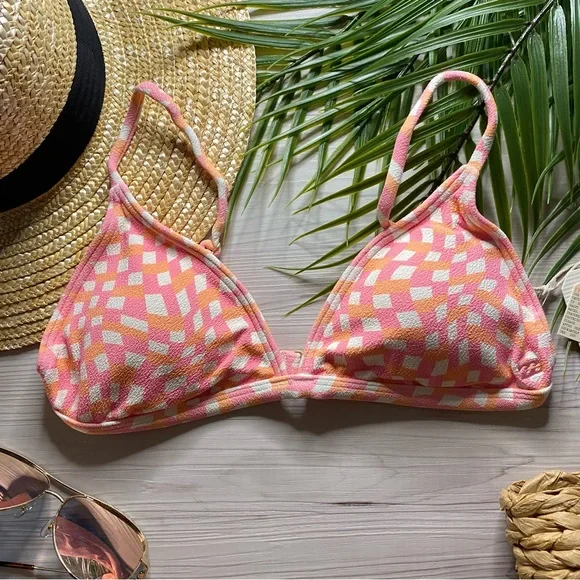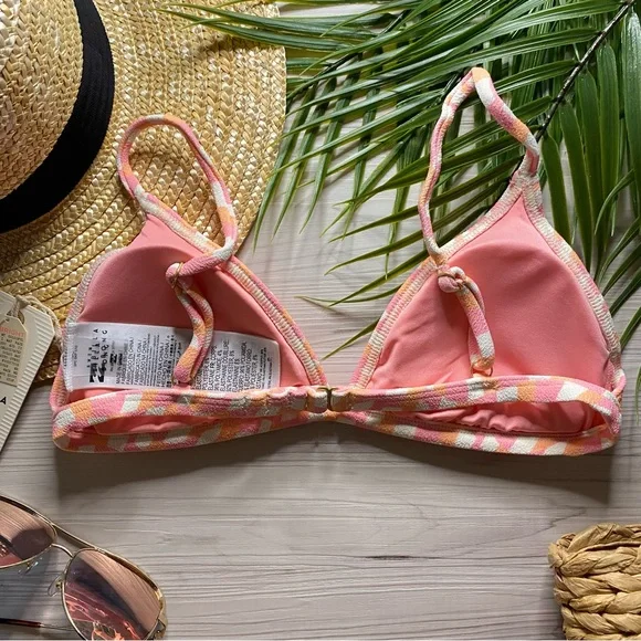 BRAND NEW WITH TAGS 🌺🌴Waltz into summer looking fine and ready to party with this stunner. The Ceci bikini top features adjustable bust and shoulder straps, and the ceci tri style gives the perfect tanlines. Summery print, love the pinkk 💕 • Recycled sunkissed crepe nylon polyester blend fabric.• Removable padding.• Adjustable ring & slider straps.ECO-CONSCIOUS FABRIC!! Check out photos for more details — I’malways here if you have any questions :)F A S T • S H I P P I N G🏄🏽♀️+☀️