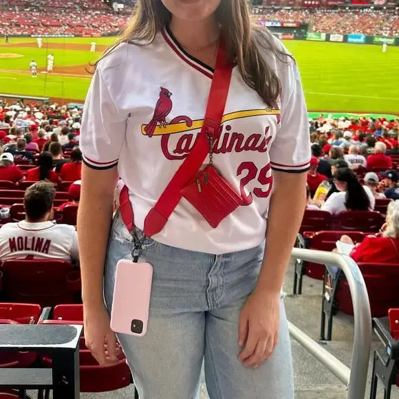 Clip & Go Phone Crossbody Strap with Pouch Solid RedThis comfortable, adjustable crossbody shoulder strap offers more than meets the eye! The multifunctional design converts the crossbody into a wristlet or can be used as a fashion strap on a purse. The included phone card is easily tucked into the back side of your own phone case through the charging hole, leaving enough room to use your charging port as normal. The Clip & Go acts as body jewelry while keeping your phone close at hand, allowing you to go hands free with ease. Your phone can hang at your side hands free, while the included innovative hanging phone card, convenient zippered change pouch and detachable wristlet combine to create a product that has an undeniable appeal. Take Advantage of the 3 in 1.Wear as a crossbody, wristlet or fashion strap on a purse. Great for gamedays.See last 2 pictures for more information.