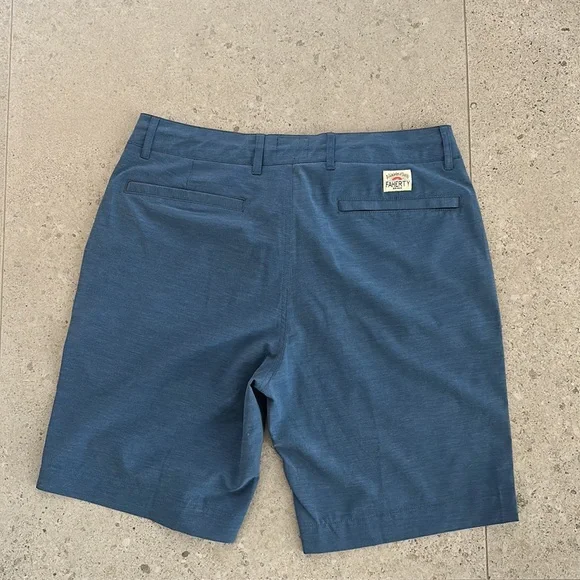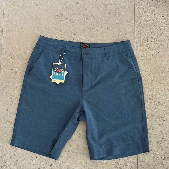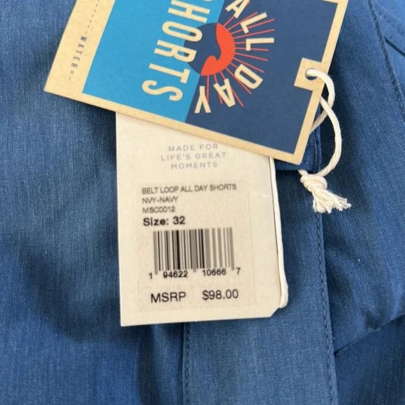 Brand new with tags, never worn. Did not fit my bf too small. Great casual shorts, good quality and nice color!Details from website:Fit: 9" Inseam, A relaxed fit and straight leg , Sits below the natural waistDetail: Interior drawstring. Zip fly with shank closure. Rubber shank at center front. Side slash pockets. Back zip pocket at wearers right. Open back welt pocket at wearers left.Material: 75% Recycled Polyester, 17% Cotton, 8% ElastaneModel: 6’3 wearing size 32"Care: Machine wash cold, tumble dry lowMSC0012