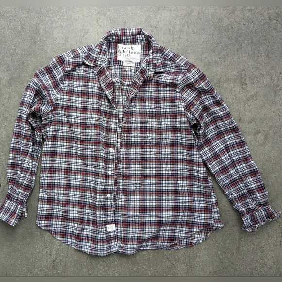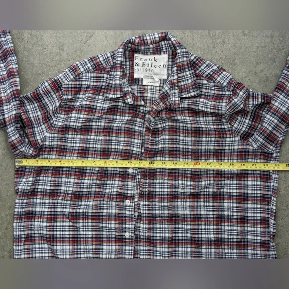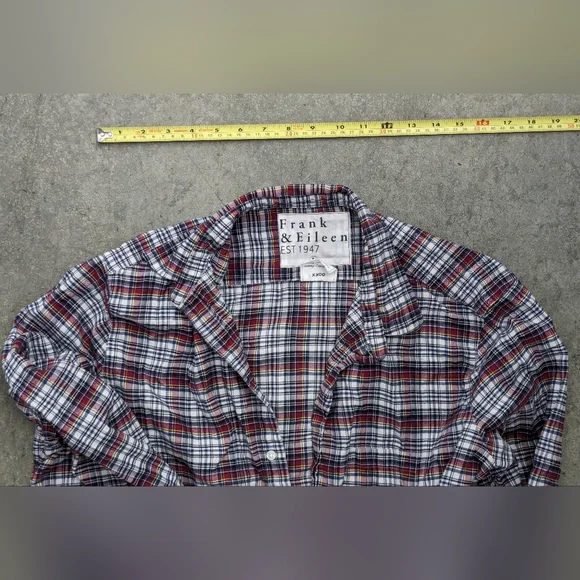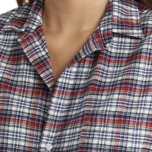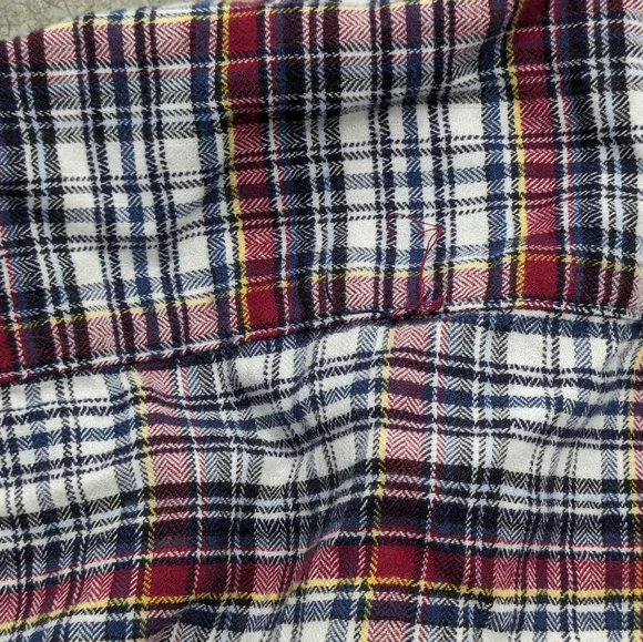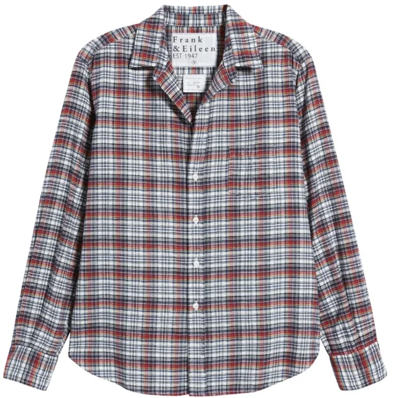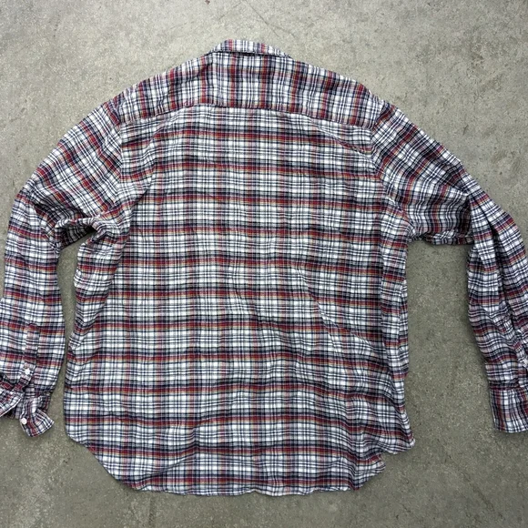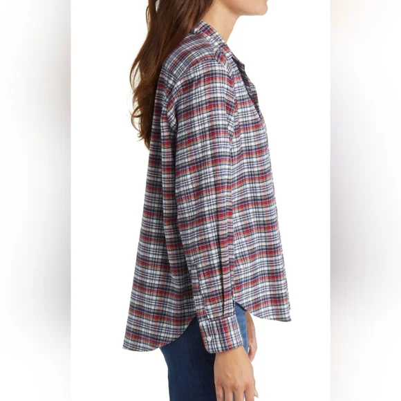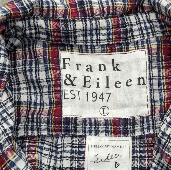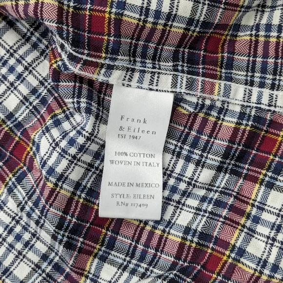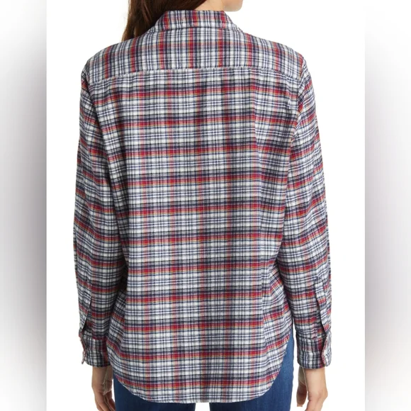 The Eileen Relaxed button+upPre-loved-Excellent condition *small loose thread in back*see imagesMade from soft cotton in a rustic plaid pattern, this button-up shirt has a relaxed fit that's easy to tuck, tie or toss over other pieces.Size:LargeColor:Wine Navy Plaid•Spread collar•Long sleeves with button cuffs•100% cotton•Machine wash, tumble dry*please see images for additional details and