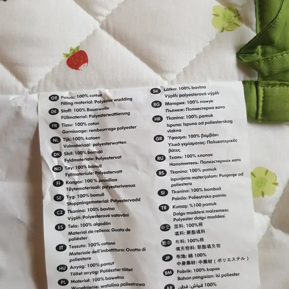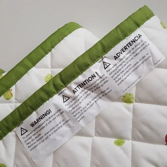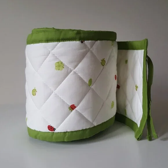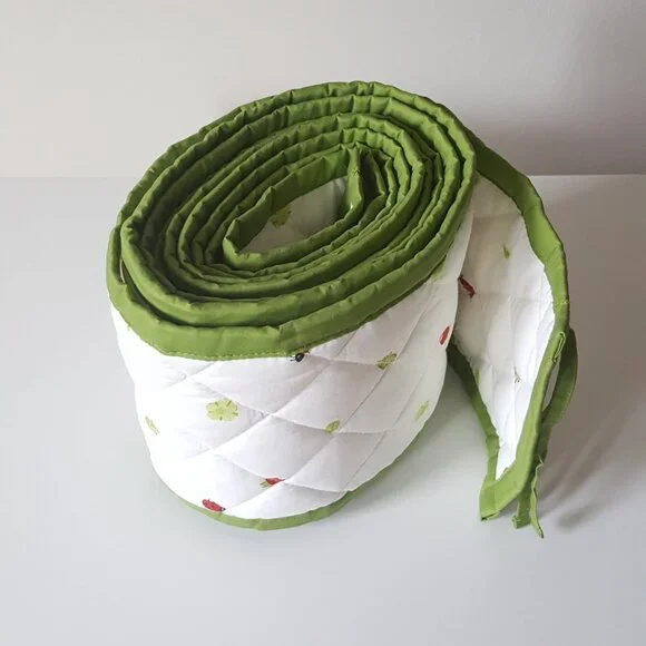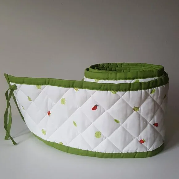 Excellent condition!Color: Green / MultiDistinct contrasts and soft material stimulate the baby's senses.Length: 168 " (426 cm)Width: 8 " (21 cm)Materials:Fabric: 100% CottonFilling material: Polyester WaddingCare instructions:Machine wash, warm 104 F(40°C).Designer: Charlotte RamelMade in ChinaWeight ~ 1 lb 4.2 ozKeywords: laces ties red strawberry strawberries leaves lady bugs ladybugs berries flowers print printed pattern quilt quilted trim bed bedding accessory baby toddler wall walls