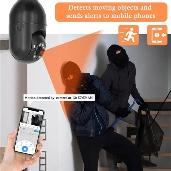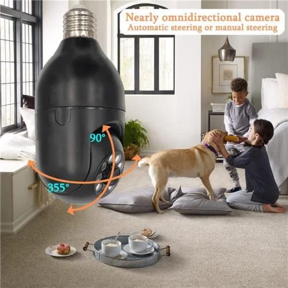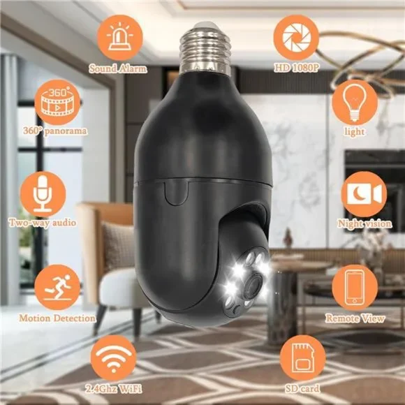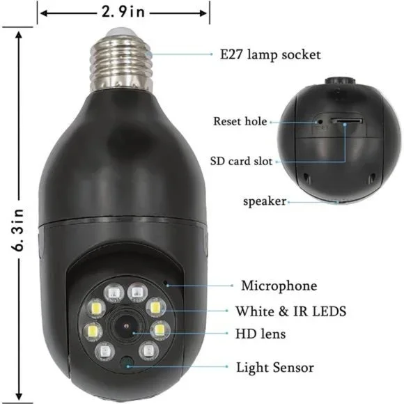 🧿【HD Smart Night Vision】1080P HD camera, more intelligent night vision function, can display the picture clearly in the dark night, you can freely switch the infrared night vision or white light night vision function according to your needs.🧿【360 degree motion detection】The camera light bulb has a 360 degree panning intelligent tracking function, when it detects the movement of an object, it will automatically turn to record the motion picture and send you a notification.🧿【Multi-functional and more practical】You can use the APP to perform more operations, such as turning left/right/up/down/zooming the screen/calling with the other party/turning the lights on and off, bringing more convenience to your life.🧿【Quick installation and setup】Turn the light bulb security camera into the E27 socket, then turn on the power, make sure your phone is connected to 2.4G WiFi, download the APP according to the user guide, and then connect to use.🧿【More privacy protection】We have included a 32G SD card, and each account can be opened with exclusive cloud storage, you can view the saved materials at any time, and protect your privacy more.