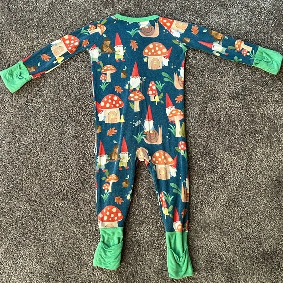 Little Sleepies Gnomes Zippy Size 3-6 monthsGreat used condition. No stains but has some wash wear and a small hole on cuff (last pic)Made from Lunaluxe Bamboo that’s gentle on sensitive or eczema-prone skinSeasonless fabric keeps them cool in the summer & cozy in the winterFold-over mittens & foot cuffs Double zipperFits up-to-3x longer than the average sleeperWill ship same/next business day!