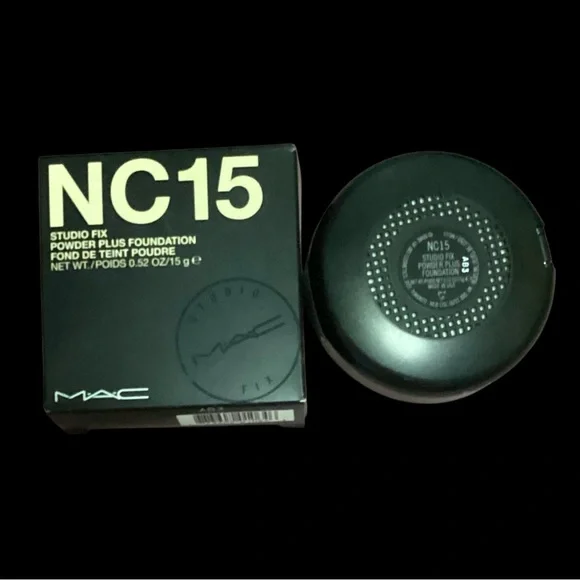 BRAND NEW MAC STUDIO FIX POWDER PLUS FOUNDATION COLOR: NC15 ( Light beige with golden undertone for light skin)- Powder and foundation, in one ultra-matte makeup- Medium-to-full correcting coverage, natural finish- Blurs redness and imperfections, reduces appearance of pores- For all skin types, especially oily skin- Controls oil and shine for 8 hours, - Provides stay-true color and non-streaking/non-caking/non-settling for 12 hours- One-step pressed powder and foundation that gives skin a 12-hour ultra-matte finish while controlling shine and without causing acneNEW IN BOX
