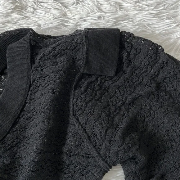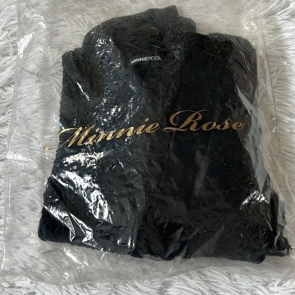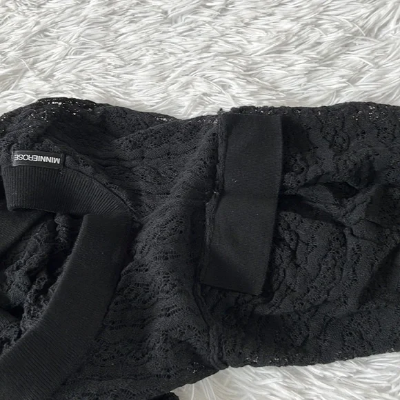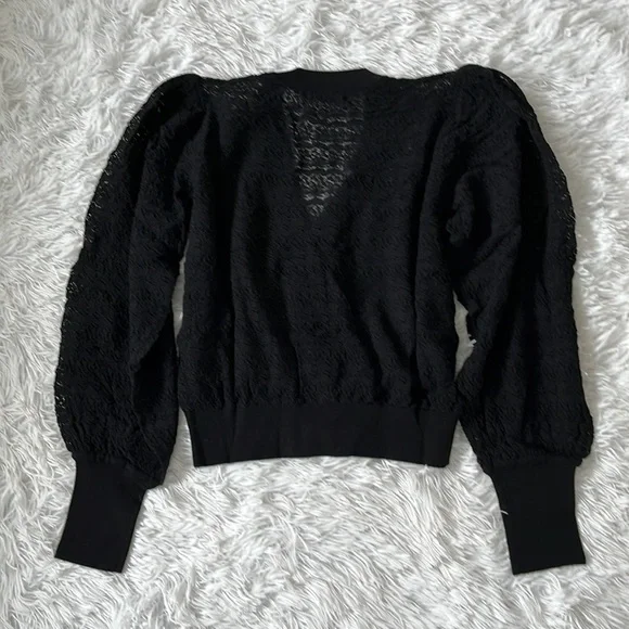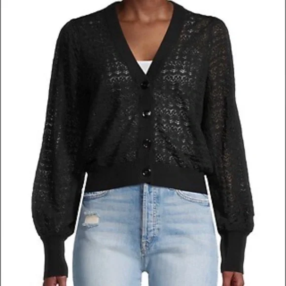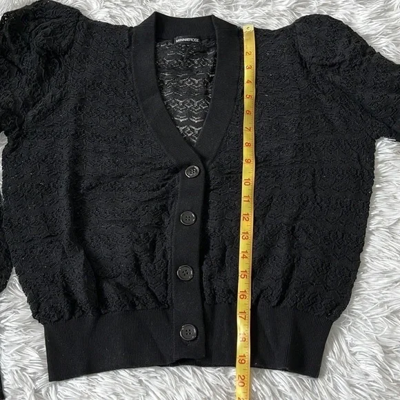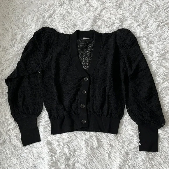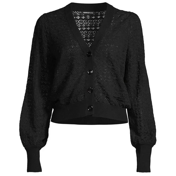 Minnie rose Puff-sleeve Open-weave Cardigan In Black size Small/MediumNew without tags-in packaging Note: There is no size attached- this fits like small/ Medium. Measurements is provided.Also- this has some smell like essential oils. I order items in bulk and get this smells sometimes. Guaranteed not used.22-b3/45-5