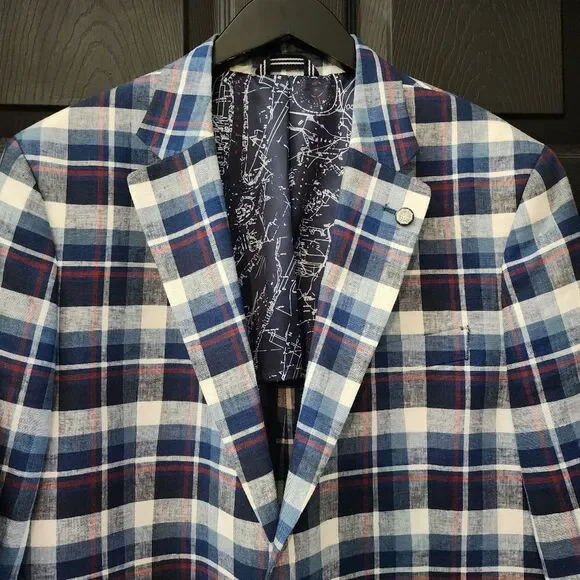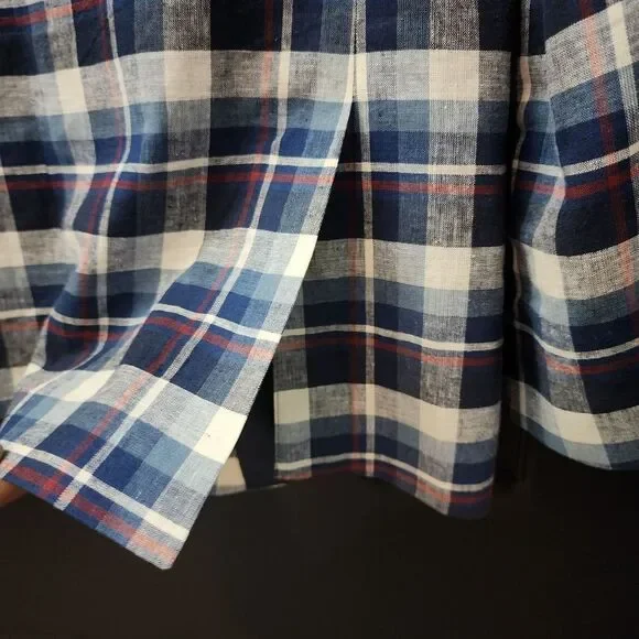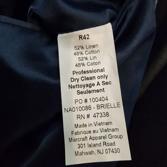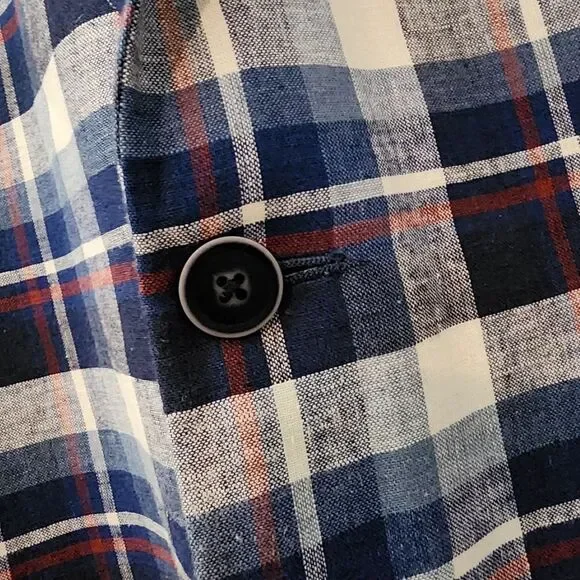 This lightweight, linen-blend blazer hits a just-right balance between business-casual and casual-cool style to take you through the whole week. Notch lapels tie together the dart-tailored silhouette.52% linen, 48% cottonDry clean2-button, single-breasted placket with notch lapelsLong sleeves; chest wet pocket; front flap pocketsLike new with no flawsGreat preowned condition