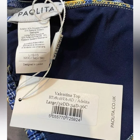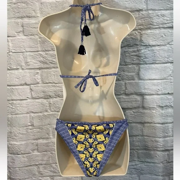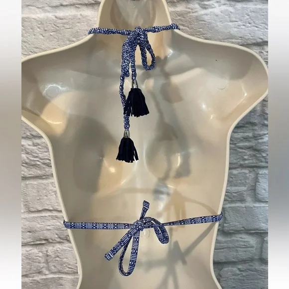 NWT Paolita Women's Valentina Triangle Two Piece Tassel Bikini Size Large/32DD/34D/36C. Both top and bottom are size Large. New with tags. Never worn or used. No holes, rips, snags, stains, pilling, peeling, fading or discoloration. Smoke free & pet friendly.Questions? Offers?Leave a comment below!Smoke free & Pet friendlyI ship on Mondays, Wednesdays and Fridays
