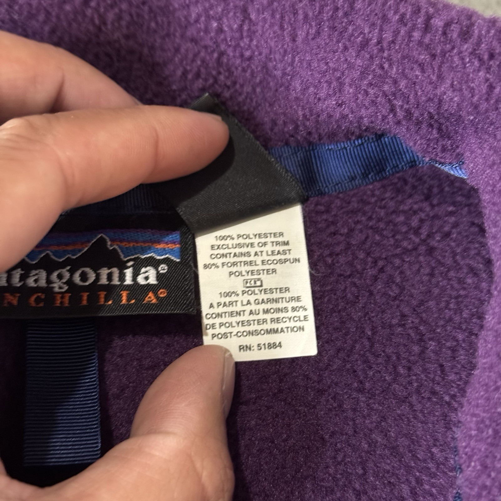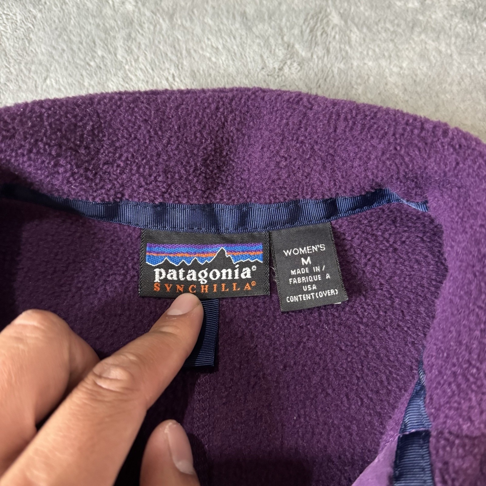 Immerse yourself in the classic comfort of Patagonia with this vintage Synchilla fleece jacket. A go-to for any casual occasion, it features a full zip closure, a cozy polyester lining, and an embroidered logo that adds a touch of iconic outdoor style. The lush purple hue is complemented by the jacket's solid pattern, making it a versatile piece for your wardrobe.