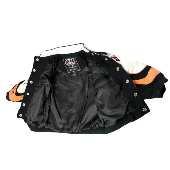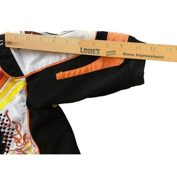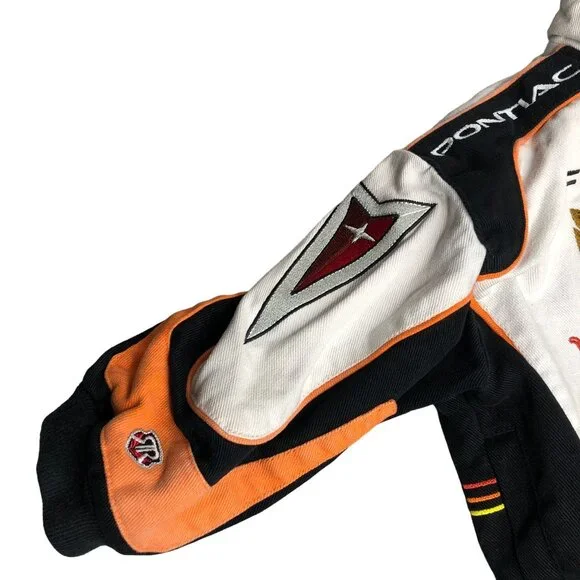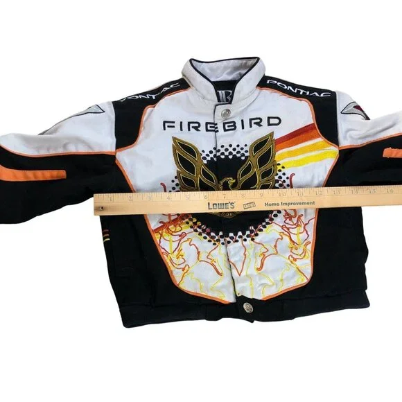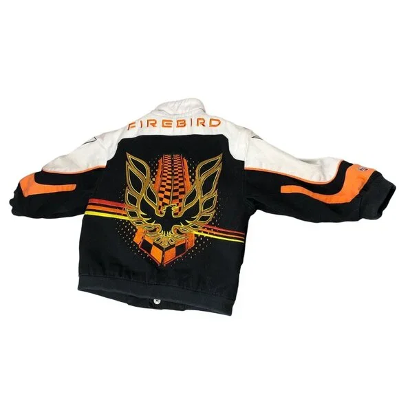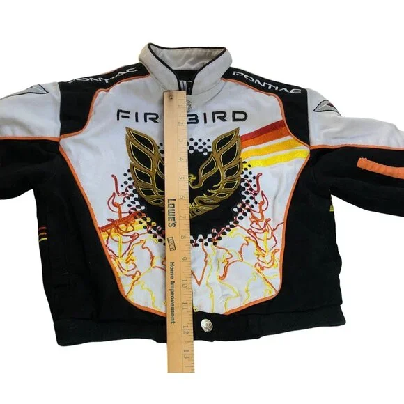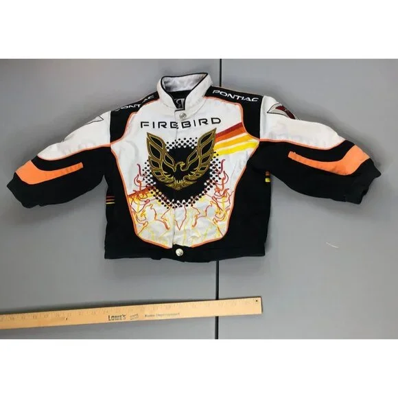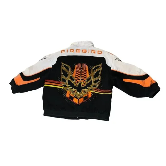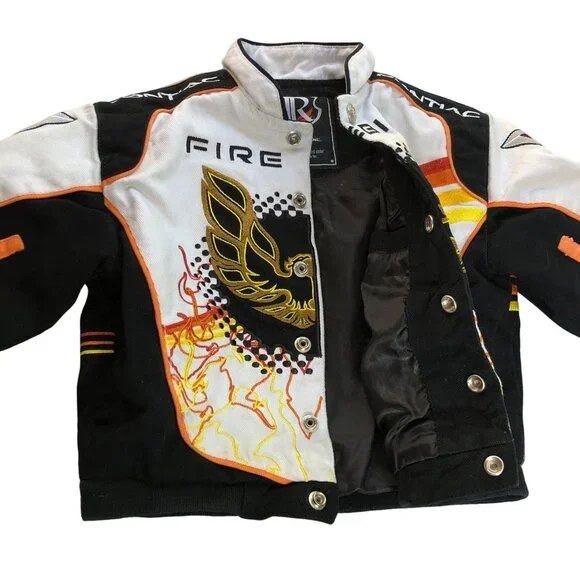 This Racing Champions vintage coat is a must-have for your little speedster. The multicolor Pontiac Firebird embroidered jacket in size 3T will have your boy revved up in style. Made from cotton, this unisex jacket is perfect for racing champions of all ages.• Multicolor Pontiac Firebird pattern• Unisex design for boys and girls• Size 3T, perfect for toddlers• Made from comfortable cotton• Racing Champions brand ensures qualityFeatures:• Winter, Fall• Pontiac Firebird• Made in China• Dry CleanSize: Boys 3TMeasurements:Chest 28 in / 71 cmLength 12.5 in / 32 cmSleeve 10.5 in / 27 cmCondition: Pre-Owned GoodGood Condition does have small spot on bottom front of jacket by buttons. Please see all Photos up close for accurate descriptions and conditions. We cannot ship to any address other than the one you have on file.Please ensure the address you want your item shipped is correct before checking out. Thank you for your visit and be sure to add us to your favorite seller's list!!We Welcome And Consider All Offers