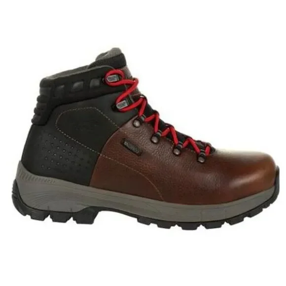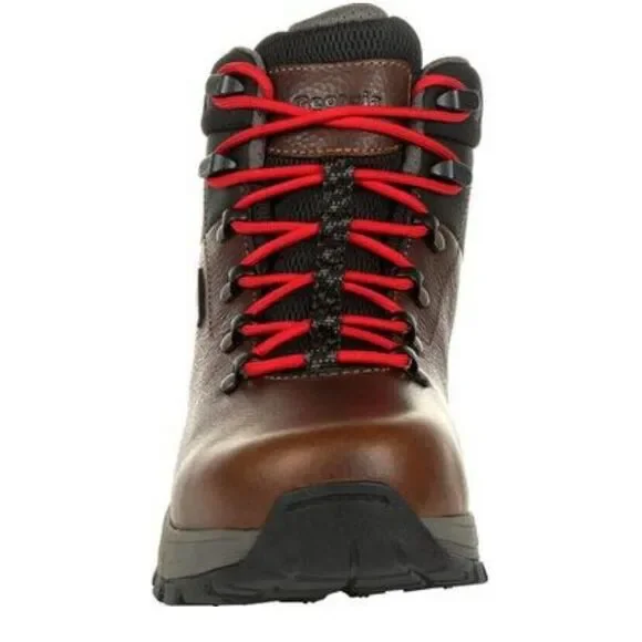 Elevate your next adventure with these Georgia Boot Eagle Trail Alloy Toe Waterproof Hikers. Designed for ultimate durability and comfort, these boots are crafted from a combination of premium leather and high-quality materials. The waterproof construction keeps your feet dry in any weather, while the round toe shape and medium shoe width provide a comfortable fit for all-day wear.Featuring an alloy toe for added protection, these boots are perfect for casual occasions and outdoor activities. The lace-up style and brown color add a touch of rugged style, while the various aspects such as the model number, style, and features ensure that you are getting a top-of-the-line product. Whether you're hitting the trails or just need a reliable pair of boots for everyday wear, these Georgia Boot Eagle Trail Hikers are the perfect choice.