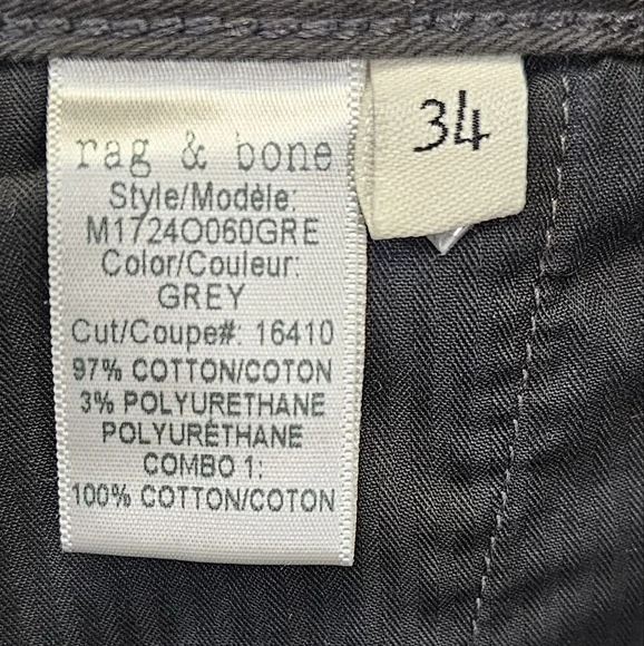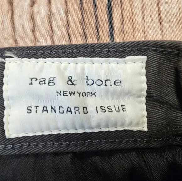 Rag & Bone New York Standard Issue Chino Pants Men's Size 34x33 Gray#1644See pictures for measurements The Rag & Bone New York Standard Issue Chino Pants in men's size 34x33 gray are a versatile and stylish addition to any wardrobe. Made from a blend of polyurethane and cotton, these knit pants feature a mid-rise, slimming fit with a straight leg style. Perfect for travel, casual outings, or business settings, these pants are easy to care for with machine washable instructions. The classic design, solid gray color, and subtle logo accents make them a timeless choice for any season.