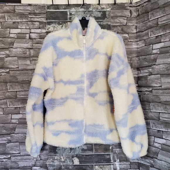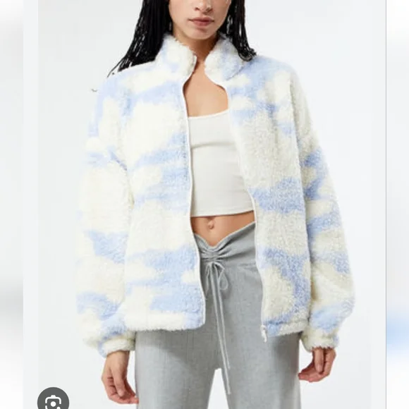 Cloud printLong sleevesDropped shouldersStand-up collarFull zipper front closureSide hand pocketsRelaxed fitElastic cuffs and hem100% polyesterMachine washableChloe Kim Signature collectionNew with tags. Please see pictures for details and let me know if you have any questions I ship the next business day
