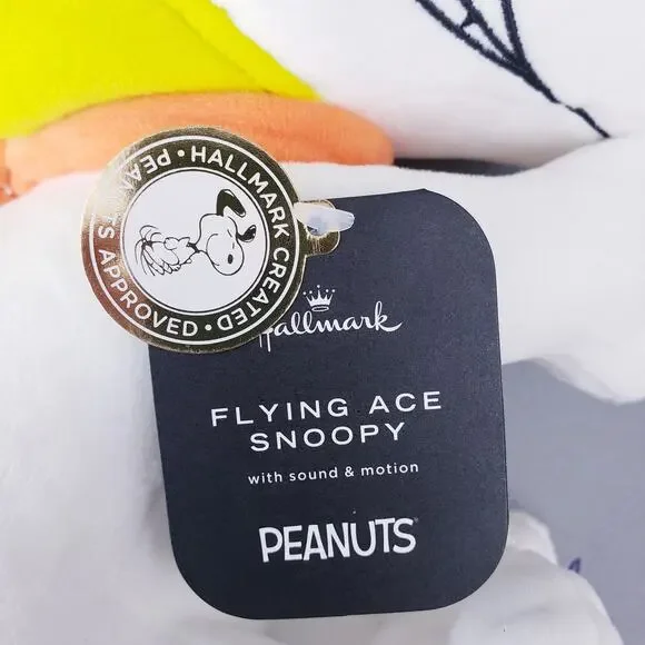 Snoopy Peanuts Hallmark Flying Ace Animated Plush Sounds Movement with TagsExcellent condition with original tags. Some light surface marks to fabric present from storage. Originals tags secure. Please see the examples provided in the listing photos.Makes plane sounds, Snoopy giggles, and zooms across the surface in a crazy pattern.2AA batteries required, not included.Thank you for looking!