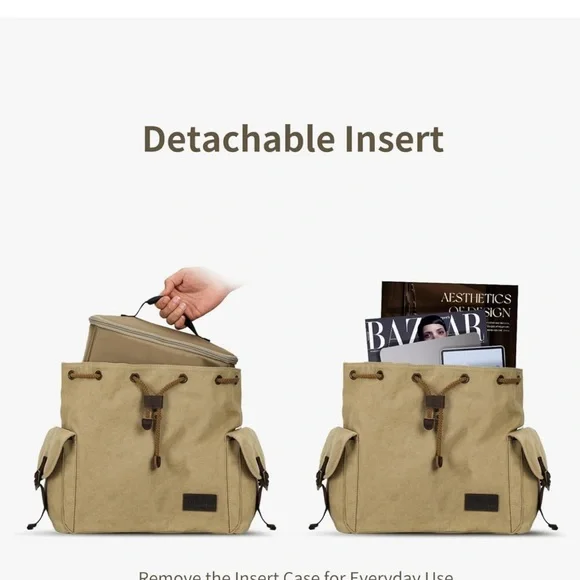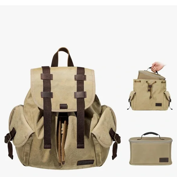 Product details About this itemAbout this item【Vintage and Elegant】 Crafted from durable washed and aged canvas, this vintage camera backpack is wear-resistant and scratch-resistant. The top handle, buckles and zipper heads feature natural top-layer cowhide for a rich texture and vibrant color. The interior is lined with pure cotton, soft and comfortable. This canvas camera bag achieves a harmonious blend of security for your photography devices and a stylish retro appearance.
