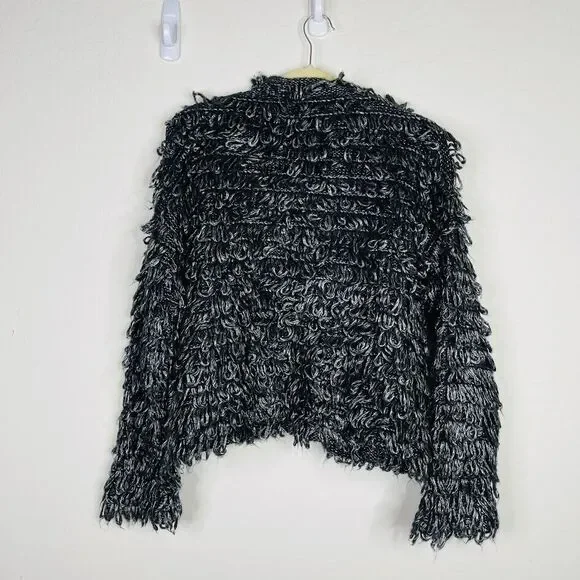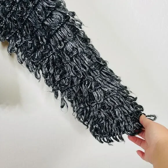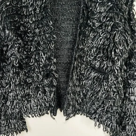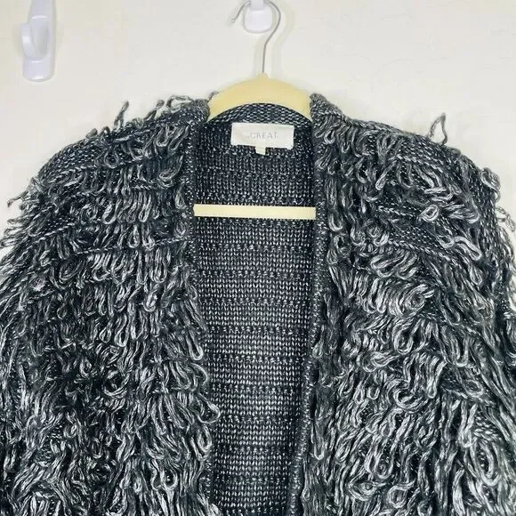 THE GREAT XS Monster Cropped Jacket Size 0 Metallic Shaggy Open Front Loop YarnSize: 0 - about a XS Condition: pre-owned - no rips, holes or stains Measurements included in photos. Ships quickly from a smoke-free, pet-FRIENDLY home. Thanks for looking! #: Tags: party, event, going out, date night, work, career, business, travel, contemporary, designer, maximalist, grunge, goth