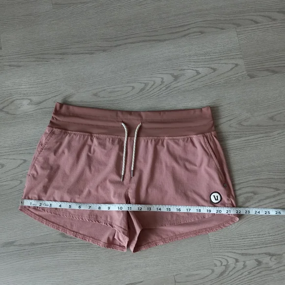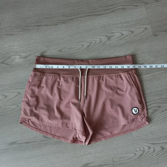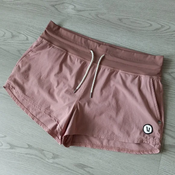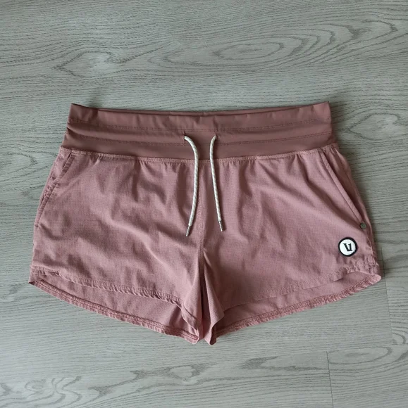 Vuori Seabreeze Performance ShortsColor: Light Terracotta Material: Lightweight, 4-way stretch performance woven fabric Designed for maximum airflow and breathability Size: LPlease, review pictures for measurements carefully to ensure the perfect fit Features:Comfortable waistband Drawcord Mash linerClassic Fit Mid Rise Side pockets, back pocket Condition: EUC No flaws to note, no excessive wear