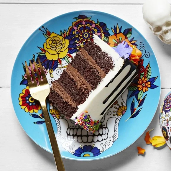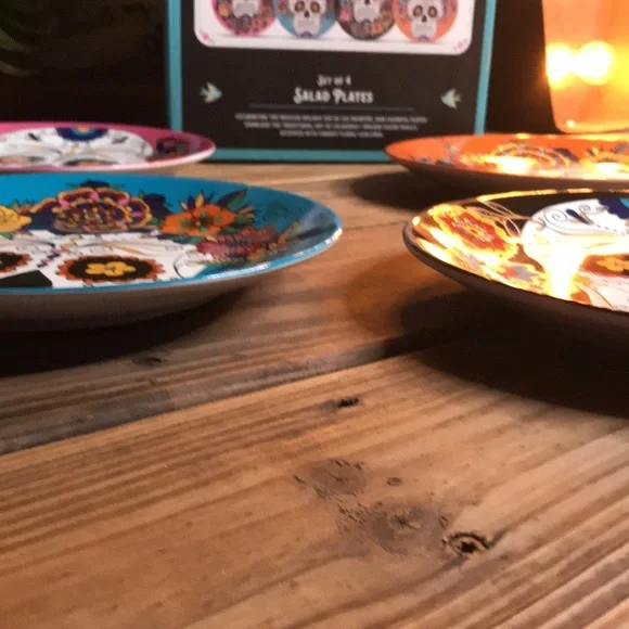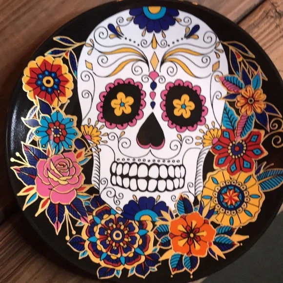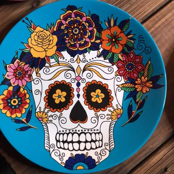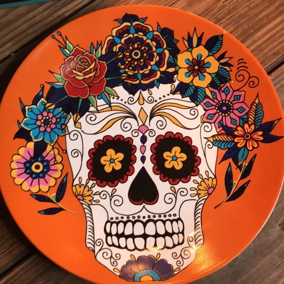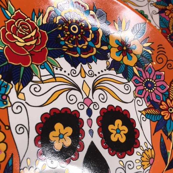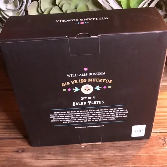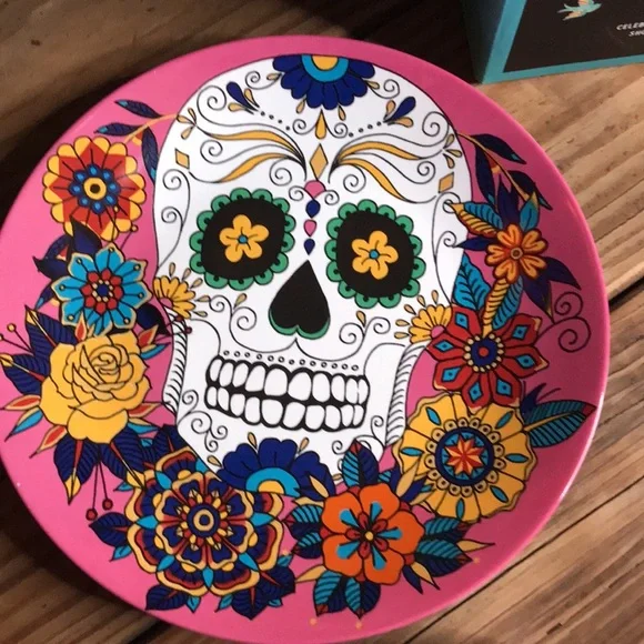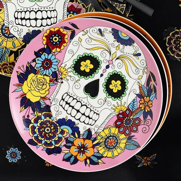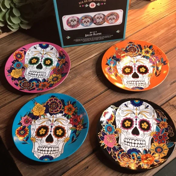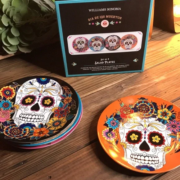 These Williams Sonoma brand porcelain plates showcase the Mexican art of calaveras, the beautifully decorated molded sugar skulls that feature prominently in Day of the Dead celebrations. Embellished with iconic skulls, vibrant colors and lush blossoms, the plates make a festive backdrop for salads, desserts and more.Crafted of durable high-fired porcelain.Hand dipped and hand decorated with vibrant decals.Microwavable and dishwasher safe.Set of four, one of each design.8 1/4" diam.