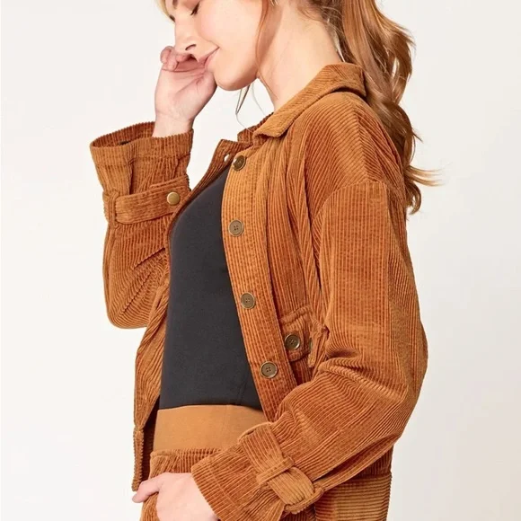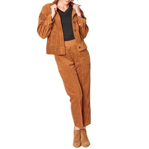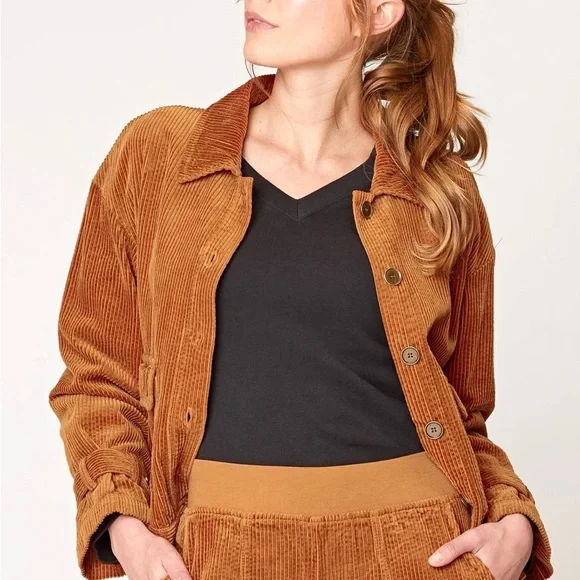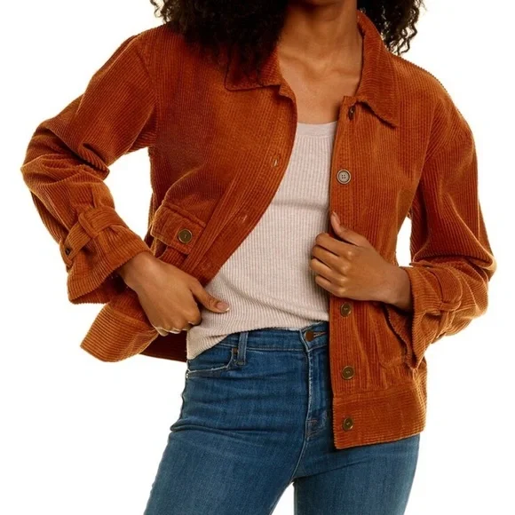 New With Tags! XCVI Tigard Relaxed Jacket in the captivating “Golden Hubbard” color is a must-have addition to your wardrobe. This jacket is designed for those who appreciate a relaxed yet chic style. Its acid wash finish and corduroy design give it a unique texture and appearance, making it a standout piece. The spread collar adds a classic touch, while the two front pockets and strap detail at the cuffs offer practicality and style.- The acid wash finish provides a trendy and distinctive look, making this jacket a fashionable choice.- The corduroy design adds depth and texture to the jacket, making it both visually appealing and comfortable to wear.- The spread collar adds a classic touch to the jacket, making it versatile for various occasions.- Two front pockets offer convenient storage and enhance the jacket’s practicality.- The strap detail at the cuffs is a stylish and functional addition, allowing you to adjust the fit and style of the jacket.- The relaxed fit ensures comfort and ease of movement, making it an ideal choice for everyday wear.Materials:Fabric: 100% cotton - Crafted from high-quality fabric that offers a comfortable and durable feel.Color:Golden Hubbard - Highlight the stunning “Golden Hubbard” color option to attract those who appreciate bold and unique hues.Approximately 22” from shoulder to hem Model is 5’ 11 -wearing a size small. Measurements may vary slightly by size. Machine wash